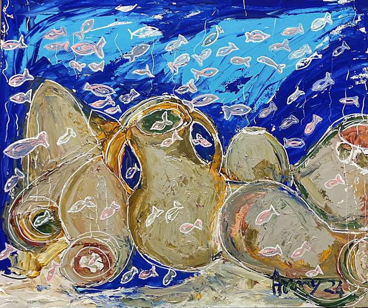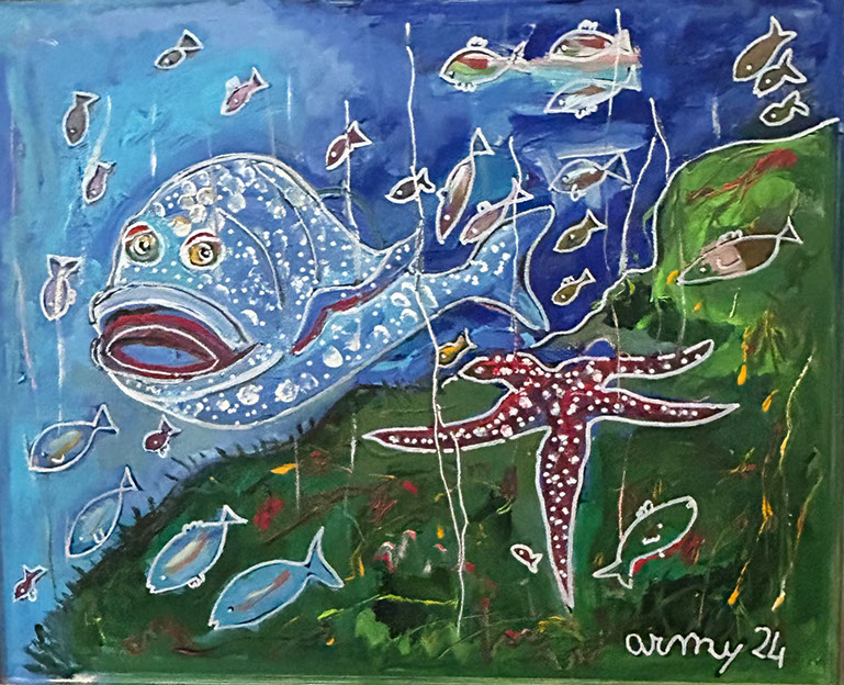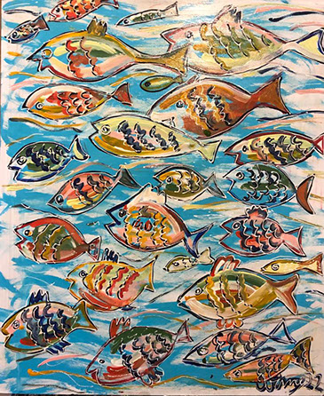 Pesci a gogò (acrilico su tavola 50x60 2022)