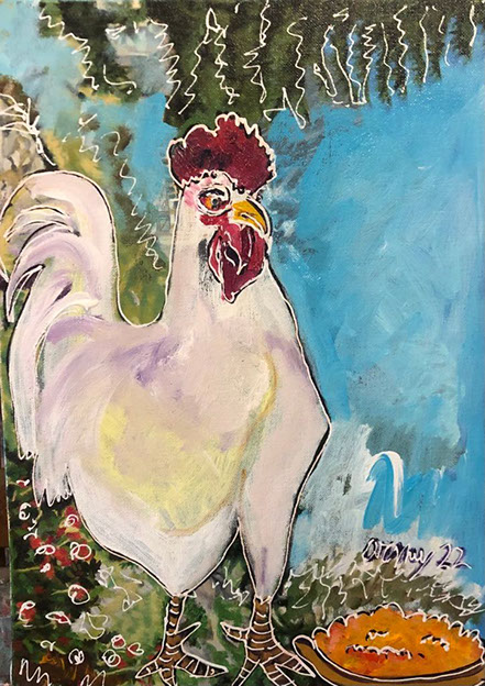 Il gallo biancone (acrilico su tela 33x45 2022)