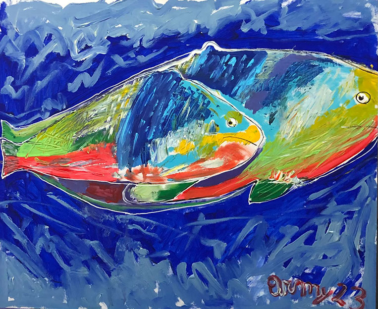 Tropical fish (acrilico su tavola 50x60 2023)
