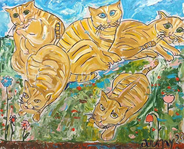 Colonia felina arancione (acrilico su tavola 50x60 2023)