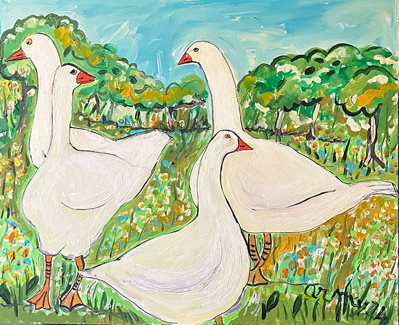 Altre oche in perlustrazione (acrilico su tavola 50x60) 2024