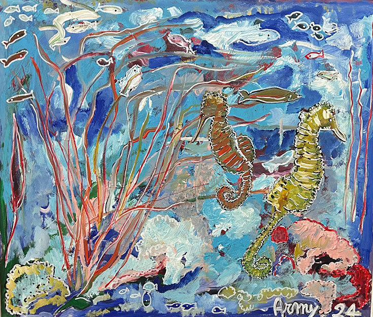 Cavallucci marini a Favignana (acrilico su tavola 50x60) 2024