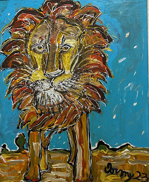 Leo e le comete (acrilico su tavola 50x60) 2024
