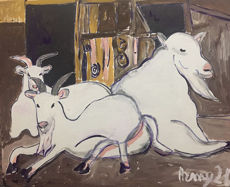 Caprette bianche (acrilico su legno 50x60 2021)