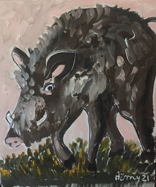 Il cinghiale (acrilico su legno 50x60 2021)