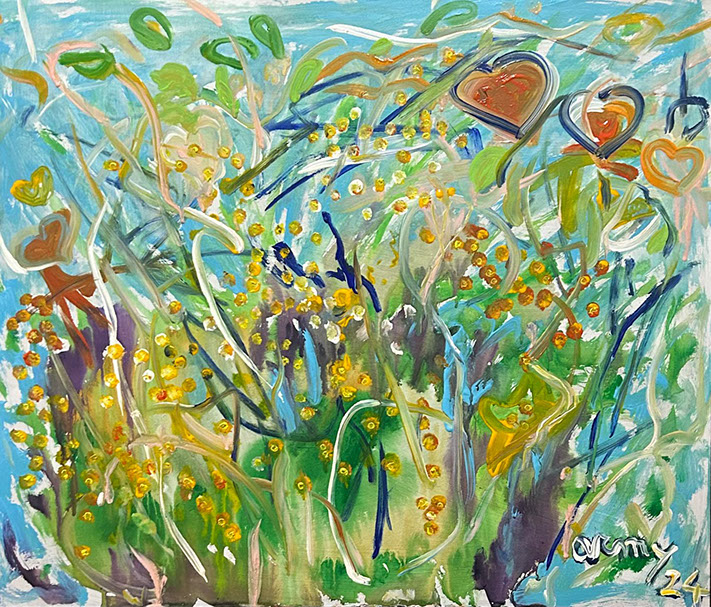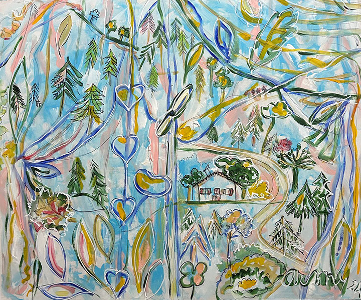 "Di là dal fiume e tra gli alberi" (Acrilico su tavola 50x60) 2024