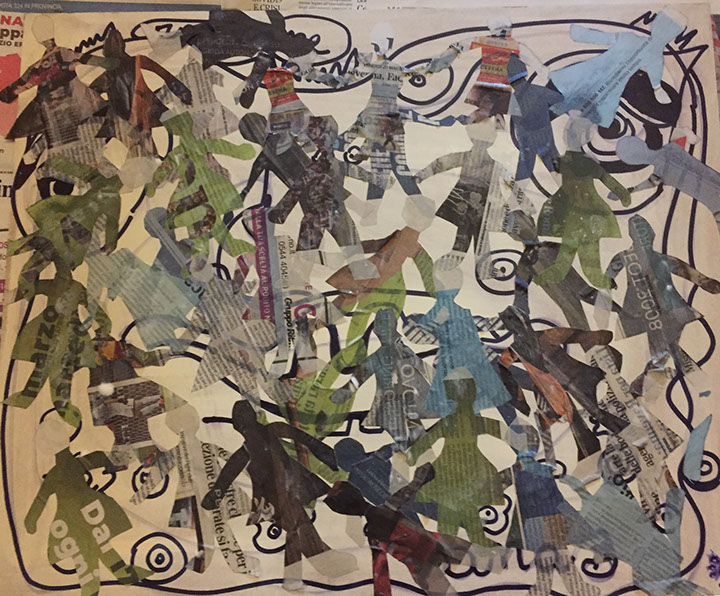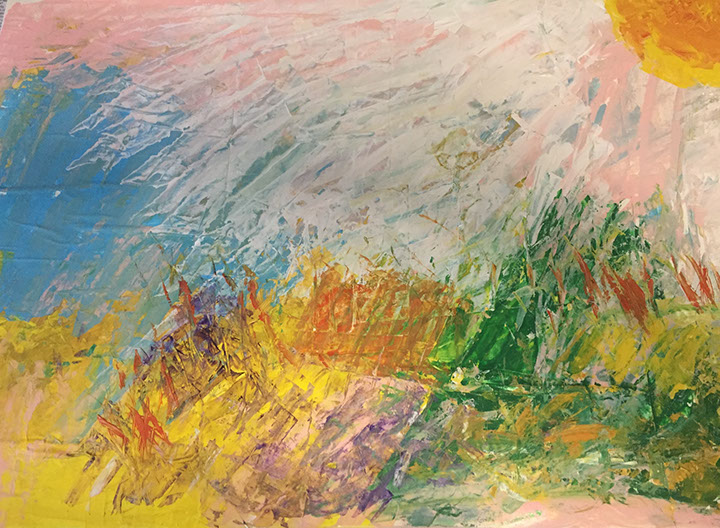 Paesaggio immaginario al tempo del covid (tecnica mista su carta 53x73 2020)