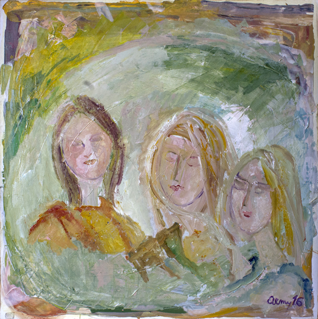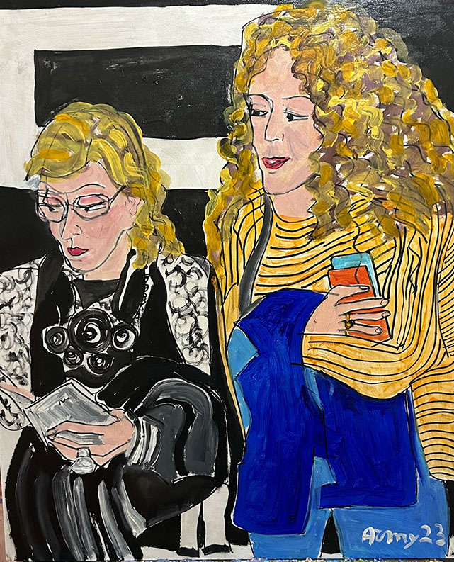 Guardando Burri: amiche di sempre (acrilico su tavola 60x50 2023)