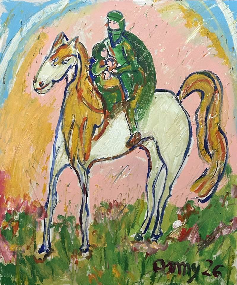 Il cavallo "fatato" che ti porta in salvo (acrilico su tavola 50x60 2026)
